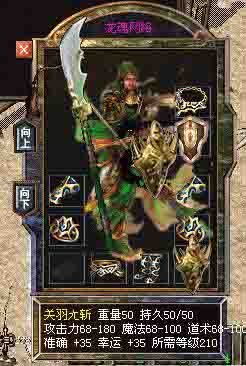 关羽ㄤ斩 幸运+35 准确+35 攻击68-180 魔法68-100 道术68-100