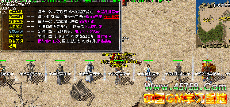 每日任务奖品丰富,相关奖品可以查看盟重老兵任务系统-查看每日任务奖励.接受每日任务在土城娱乐任务管家处接受.