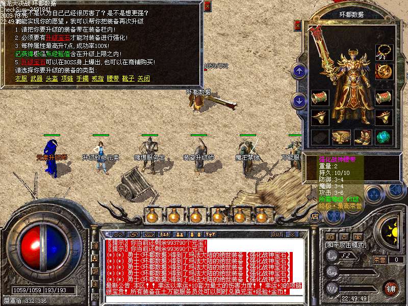 9:终极装备打造:又是一位追逐梦想的英雄.花三件同样的战神首饰+500元宝打造出身份象征的稀世,荣誉标志的强化装备.(GM卖元宝卖到笑)