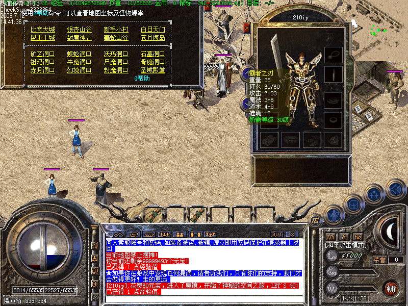 升级可以到蜈蚣洞,猪洞,幻境,石墓,封魔等区域!