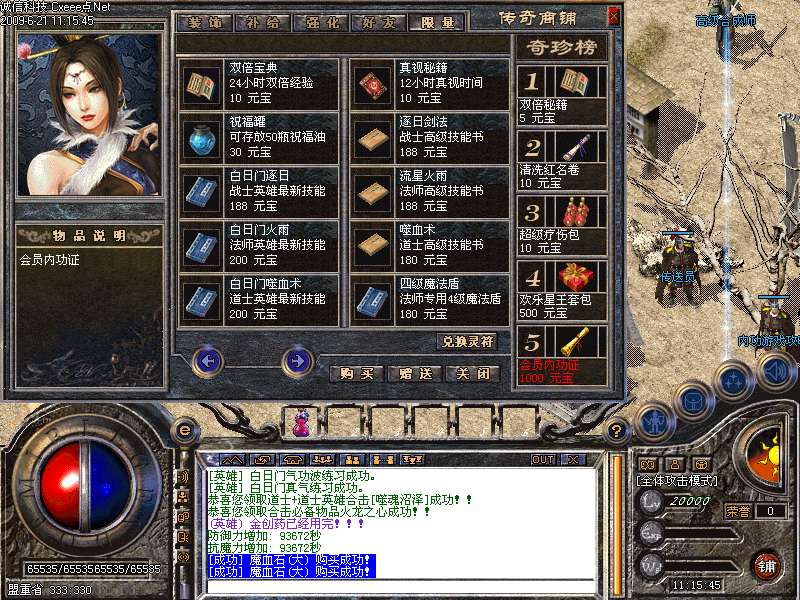 [255,56]元宝充值:元宝短信比例1:1000点卡比例1:1500 网银汇款比例1:2000。神州行充值卡送50%、骏网一卡通、盛大游戏点卡送50%、征途游戏卡、久游一卡通送50%、魔兽世界游戏卡、热血传奇游戏卡送50%、QB卡送50%、网上银行及财富通送100%、点卡充值请登陆<Www.Cxeee.Net>进行充值!联系客服QQ'无GM模式