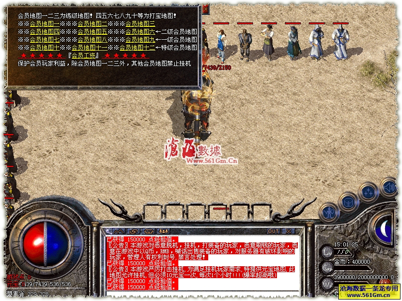 ★特级会员待遇如下:自身攻击属性比普通玩家高30%打怪经验多100%,每天都可以领工资(钱+声望+经验) 有本会员地图9个!方便的职业转换功能,可以转换为任何职业!