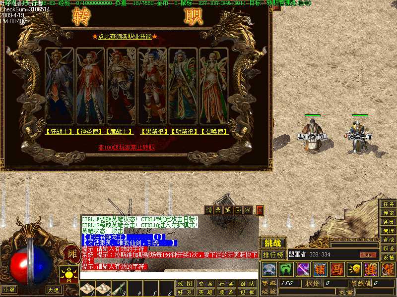 这时候先回城去把杀死火龙的任务交掉,接到30个元素门弟子首级的任务