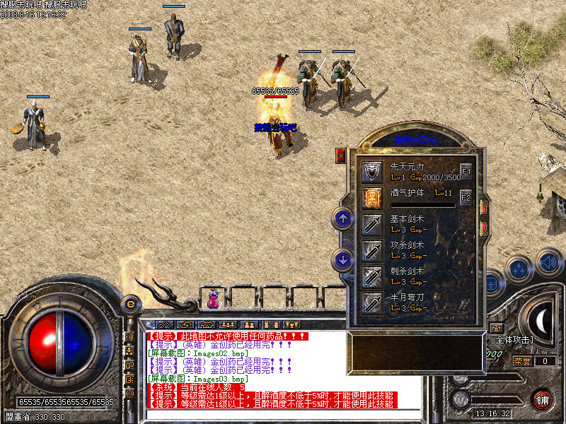 服务器加入了很多盛大最新版的功能和地图.装备四格全部可用.火龙之心需要道具恢复持久.详情请点击盟重药店老板咨询.