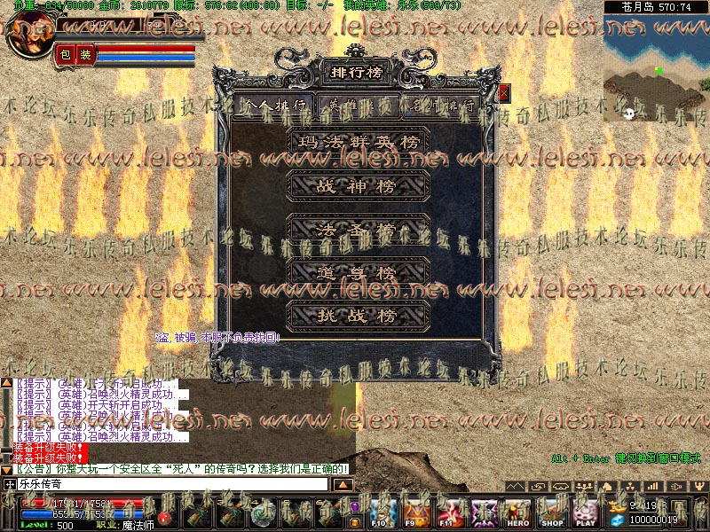 5:行会争霸王 已经完全弄好 胜利的行会成员(参加的) 获得20或10元宝。。(每天晚19点开门...19点20分关门。。。20点结束。。