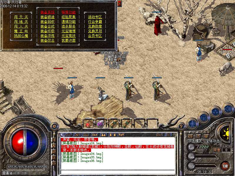 √.加入招怪大使,打死土城安全区神鹰,进入神秘地图,挑战招怪大使,获得大量元宝并红字公告提示。
