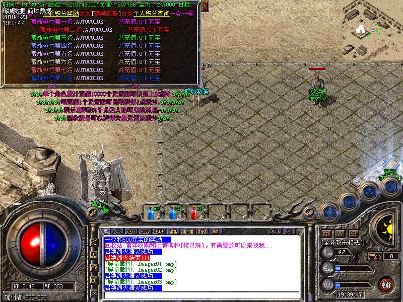 [元宝销售]:元宝永久价格短信1:100,点卡1:150,网银1:200,不打折,无优惠。每充值1个元宝可以获得1点的积分,积分可以进入积分地图打装备或兑换某些特殊物品...