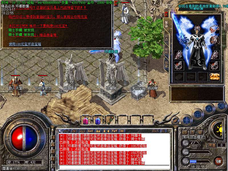 12.幸运宝箱:此宝箱可用少量元宝开出高额经验!(可在散人天堂三层打元宝开箱子获取高额经验)