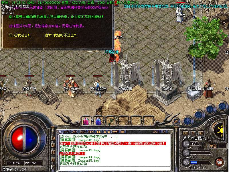 11. 散人天堂:免费地图此地图此地图分为4层.(怪物经验提高10倍,而且有BOSS爆元宝和JP装备)