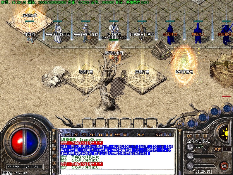 开区前100名到61级的奖励300元宝 前50名到64级奖励1500元宝 前20名到66级奖励3000元宝 68级可得6000元宝,70级黄金武器一把,73级特戒一个,快速升级去庄园开经验 或者从四大神兽处用神石锻造经验! 开区3天拿沙沙城老大奖励本服唯一一把沙城武器永恒虎威+30000元宝