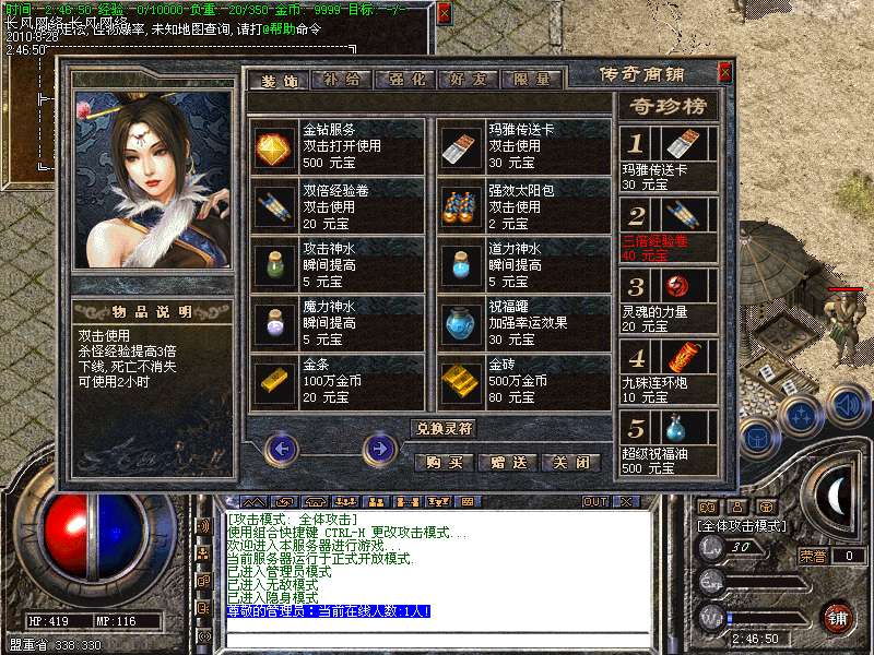 1:本游戏为复古版传奇。适合希望找一个长期,稳定传奇的玩家。历经上百区实践.各种设置都做了最大优化。