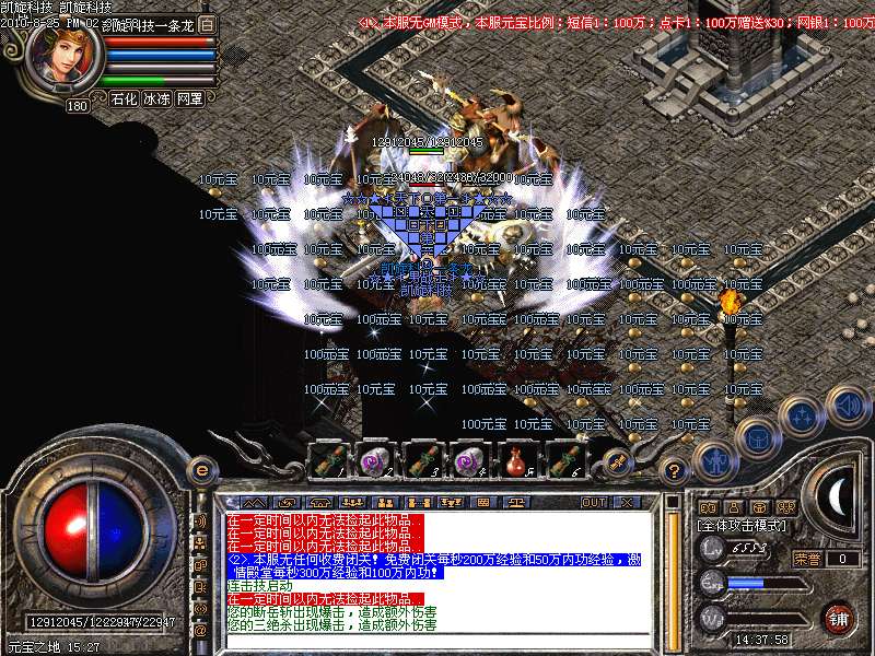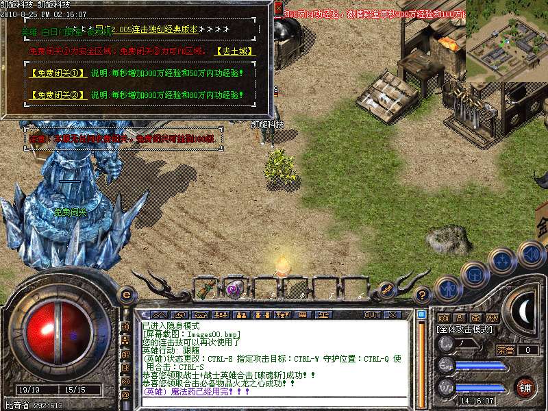 激情殿堂: 打初中级装备,另外进入本地图可和免费闭关一样自动获得100万经验和内功经验!