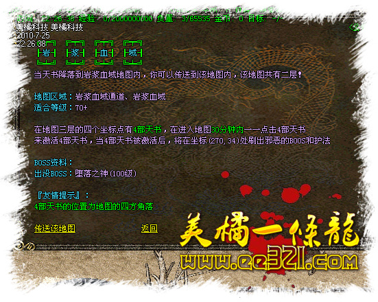 [高级装备地图]: 中阶寻宝 地族宫殿 天界人间 幻影迷宫 邪恶魔穴