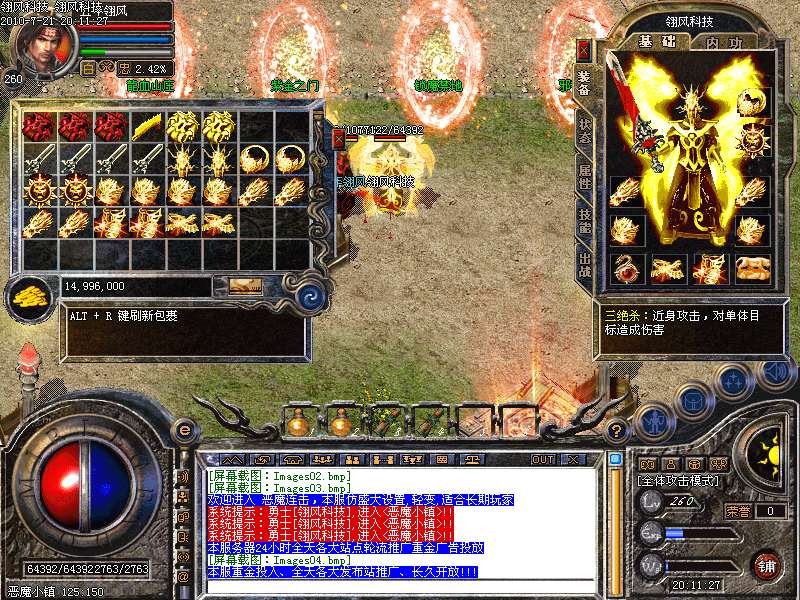 职业平衡:调整三职业的平衡性 加强道道合击 道士圣兽 加强法师火墙威力 魔法盾抵挡伤害 加强三职业内功等级属性