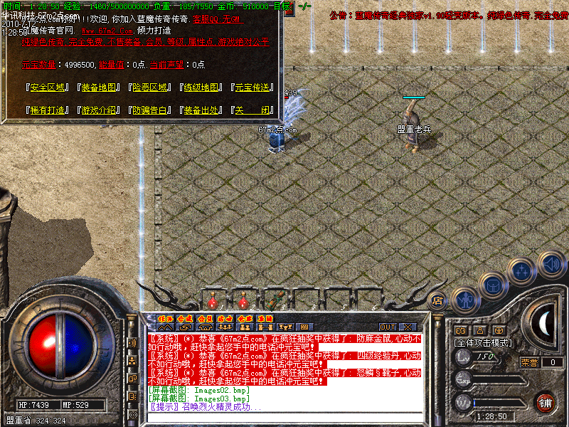 ★修正练级问题,练级变的非常容易,新手去蜈蚣打怪升级,基本是满屏的怪物 ★增加宝箱系统,可以开出本F所有装备 ★为普通玩家考虑,新增专暴元宝地图,只要你用心打,一天赚5000个元宝是没问题的 ★增加灵魂属性系统,有元宝的玩家可以去试下,效果是非常不错的~ ★增加坐骑系统,坐骑需要在天机老人那里合成,带防麻痹属性,帅就一个字 ★ 烟花之地,玩家可通过打怪获得九珠连环炮,或在商铺购买,燃放后有机会进入此地图,暴率是外面的3倍,暴本服终级装备 ★ 天邪圣地,共4层,装备暴率是外面的2倍,暴本服终级装备 ★ 幽灵禁地,装备暴率是外面的2倍,暴本服终级装备 ★ 飘渺神殿,此地图刷本服所有BOSS,暴本F所有装备,包括金牛装备 ★ 最新增加装备回收,大家可以把多余的装备换成50万~100万~200万~500万~等不同的经验~不用元宝练级也快 1 新增加稀有物品,稀有物品可以打造至+9,85级装备!打造成+9只需10件普通稀有装备!