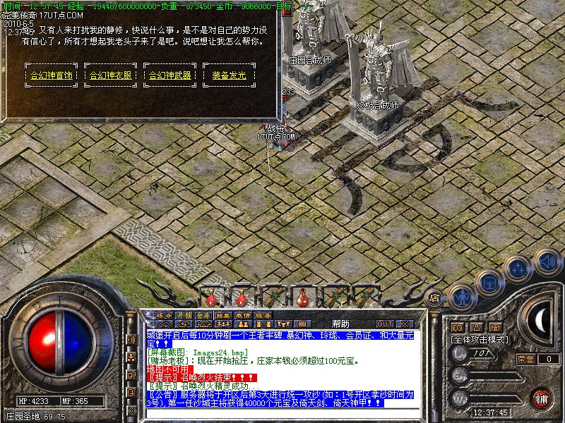 11、更新会员系统,会员打命令[@服务] 会员享受:①可直接传至地图深处 ②会员专用练级地图,升级超快!!