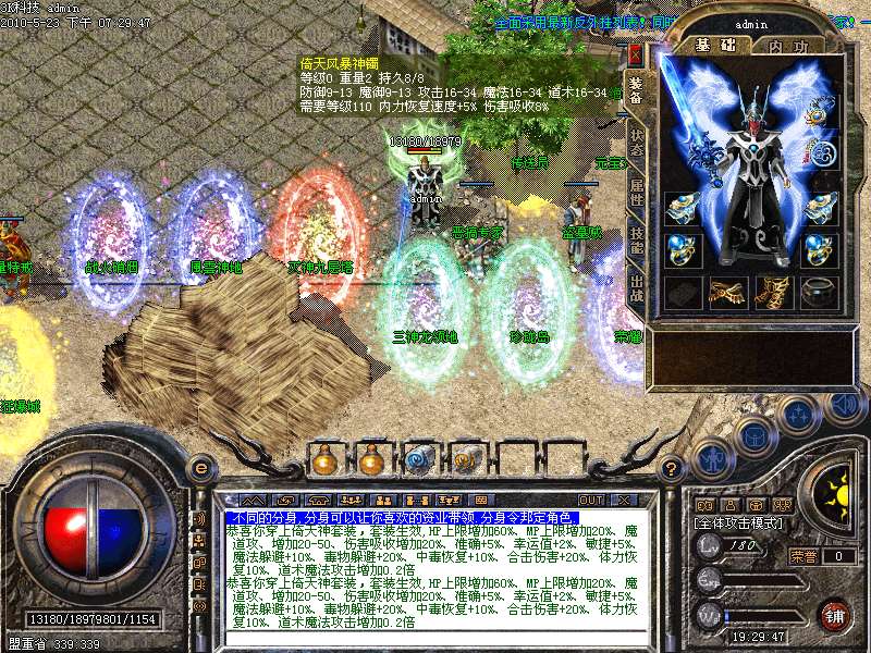 1.天下第一:每职业等级第一名随时在土城左下角申请,可获得1.2倍攻魔道!
