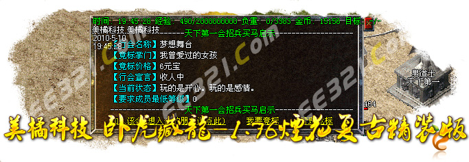 〖公告〗:本服务器上线送金钻会员、元宝回收装备真正打造一个想不花钱玩得一样爽的1.76服务器。目前服务器已经提前开放,欢迎长期玩家进入,会员命令@服务。