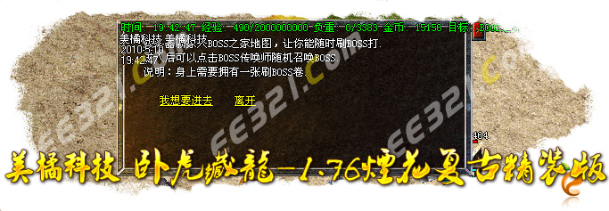 〖提示〗:不要抱怨装备不好打,因为本服是长期服,走服玩家请绕行;不要抱怨别人的装备好,如果你付出了,你一定会更强!
