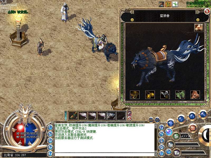 4.增加坐骑系统,老虎坐骑和狼坐骑,但是这个版本狼坐骑我不开放,数据库里是有的,因为以后更新要用到。