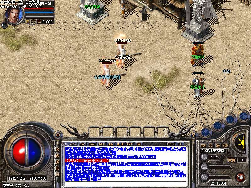 - ☉ V8引擎传奇端游【荒域专属单职业九大陆】Win一键端+配套补丁网站+架设教程