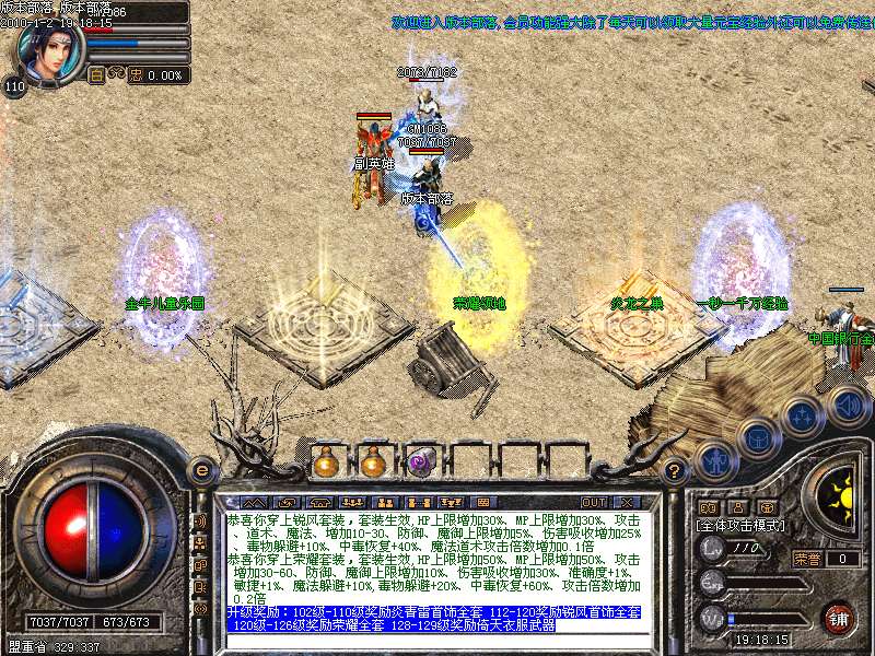 升级奖励:102级-110级奖励炎青雷首饰全套 112-120奖励锐风首饰全套120级-126级奖励荣耀全套 128-129级奖励倚天衣服武器