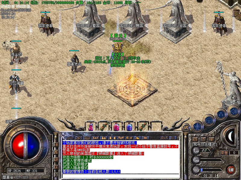 3,修正封号系统,天下第一人上线1.2攻击,同时获得天下第一人和天下第一剑的人上线1.44,攻击增加天下第一人,土城树立雕像