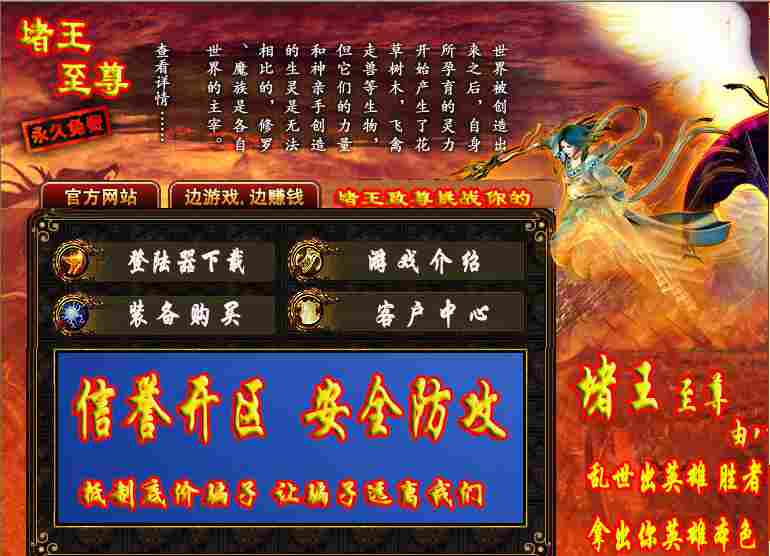 盟重振天《震天伏魔》 可自己选择以堵方式