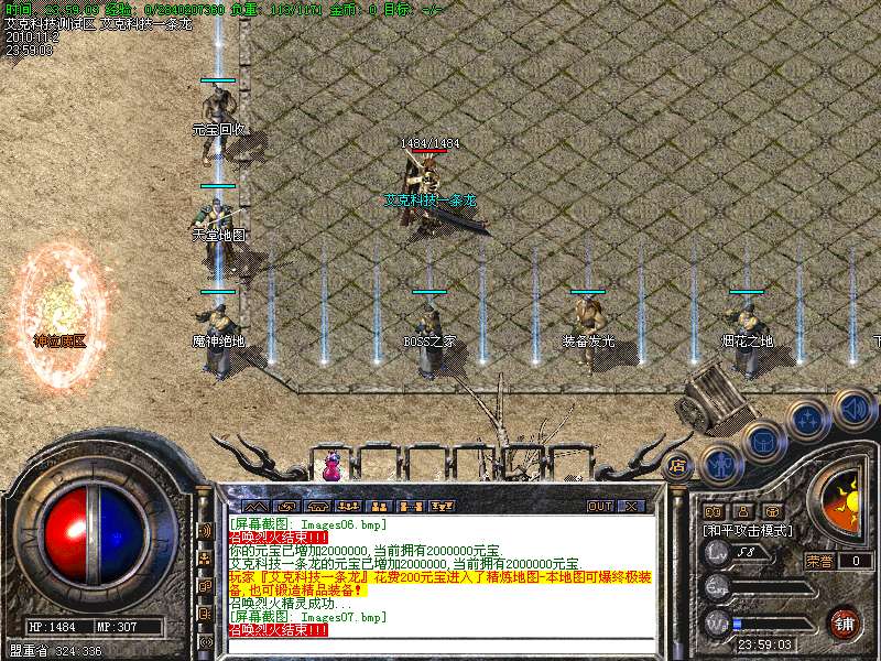 3.首次攻沙奖励5W元宝+2把精品屠龙。本服幸运9为最佳攻击效果!!!