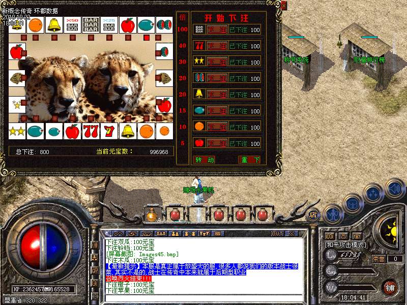 【娱乐系统】:设有二种娱乐博彩系统,1:高仿真带音效雪豹水果机,让你能重新体味到游戏机室的快感.2:适用于全服玩家参与的牌九游戏,庄家坐庄后,其他玩家可在顺门,天门,反门,三处任意下注,每门二张牌,与庄家比点数大小,简单,但能让你感受真正的刺激。兼备运气与智慧以及资产实力!玩家与玩家之间的较量,系统不收取任何费用或税务!