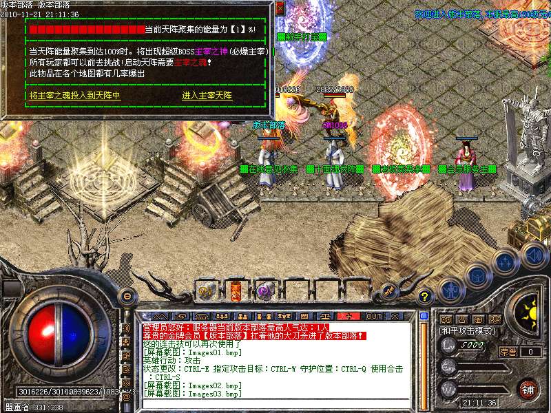 每天每隔2小时举行一次BOSS来袭活动!地点在土城药店下方!请留意系统公告!