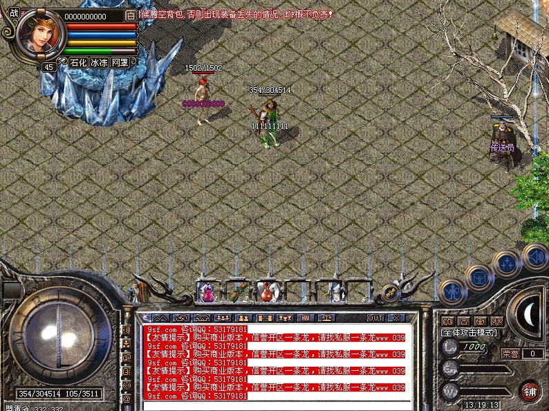 请各位玩家注意~在修炼场挂机升级的时候腾空背包~否则出现装备丢失的情况 本F概不负责